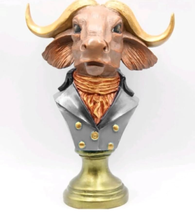 Bring a bold and whimsical touch to your space with this handmade Buffalo Man Statue. Crafted from durable polyester, this 31x24x17 cm animal head bust features a dapper buffalo dressed in vintage attire, combining elegance with humor. Ideal for eclectic home interiors, office desks, or as a conversation-starting gift 🐃🎩