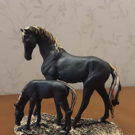 Elegant Horse Decor Statue, Mother and Foal Sculpture, Horse Lover Gift Idea, Animal Figurines For Table Decor, Luxury Horse Decor Figurine