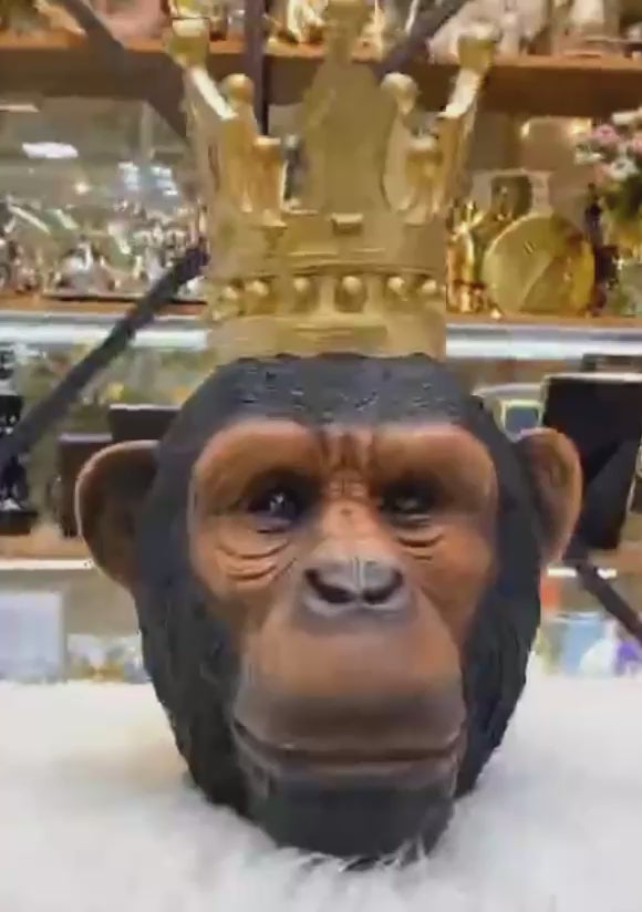 Handmade Monkey King Decor, Crowned Chimp Statue, Handmade Monkey Decor, Handmade King Monkey Statue, Crown Monkey Decor, Monkey Head Decor