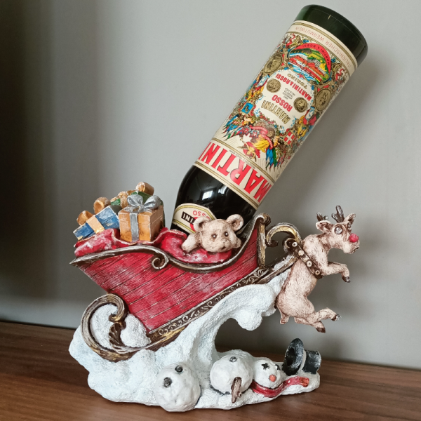 🦌 Features a reindeer pulling a sleigh filled with presents and teddy bear