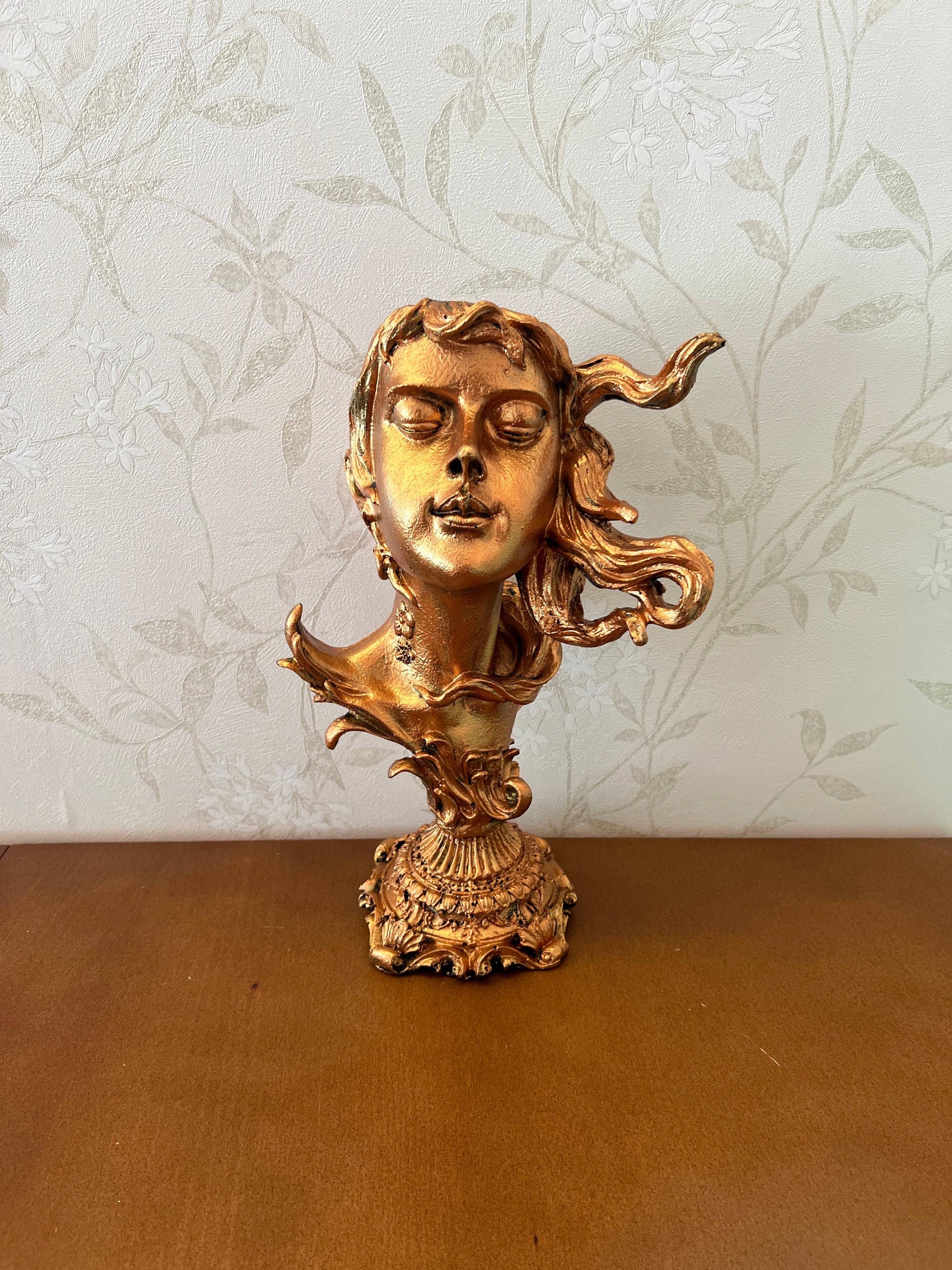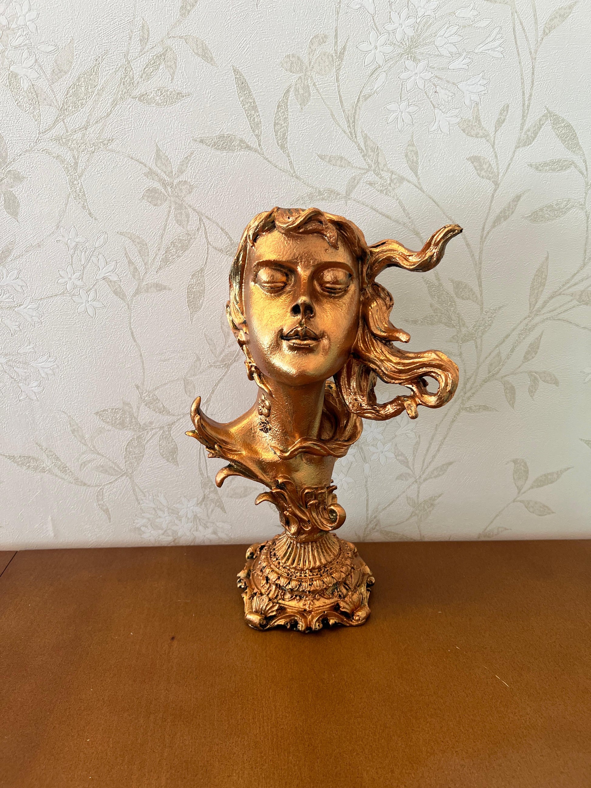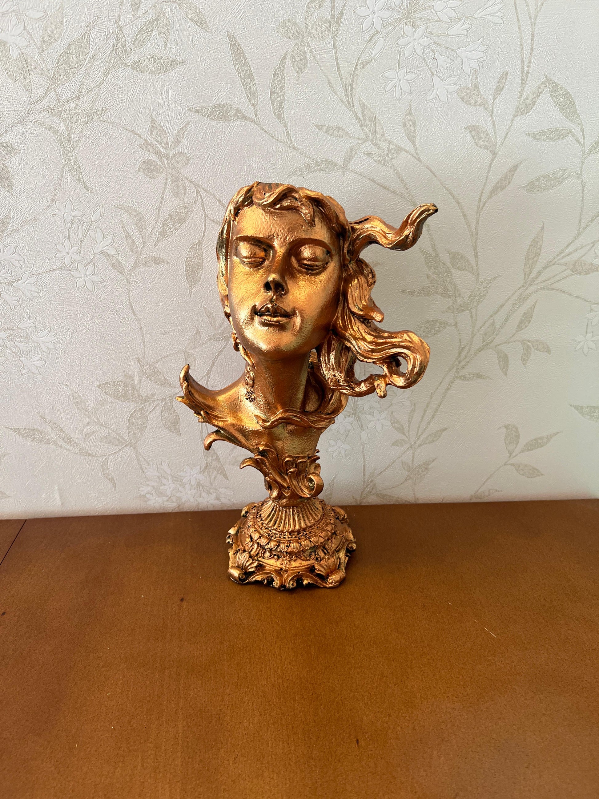 Woman Head Statue with Flowing Hair, Elegant Decorative Bust, Woman Head Statue, Elegant Face Statue, Artistic Decor Piece, Woman Art Bust